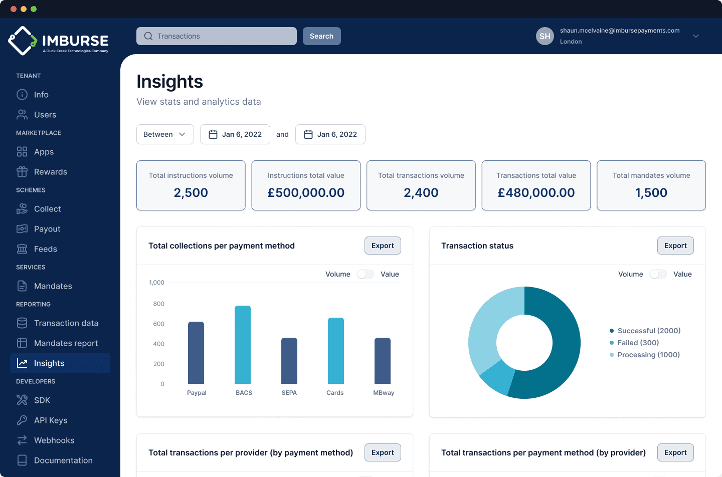 Imburse is a “Payments as a Service” enterprise platform that connects insurers of any size to the global payments ecosystem—covering everything from card collections to e-wallets and payouts. Historically, services were offered via API integrations. Over time, engineering built client portals for faster onboarding and configuration, but these portals lacked design direction and consistency.