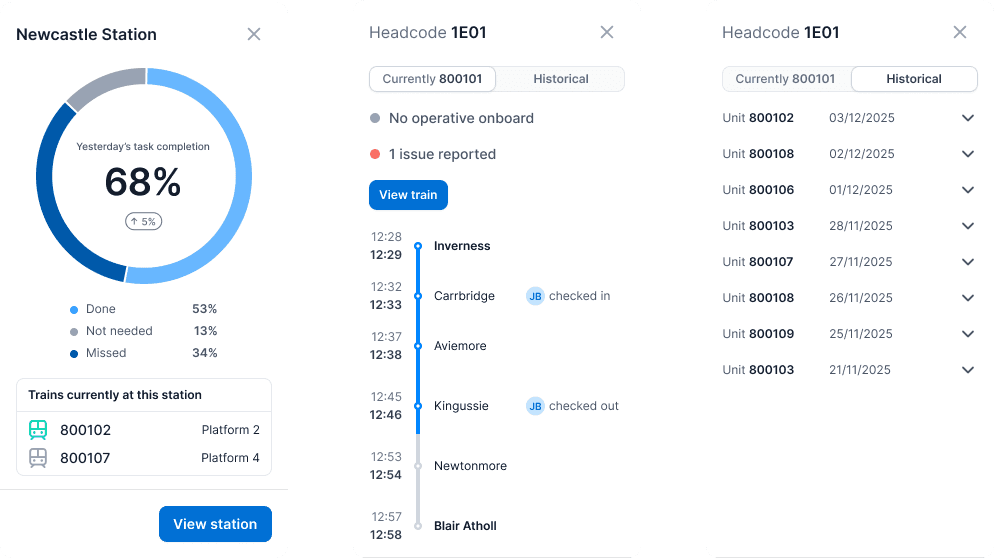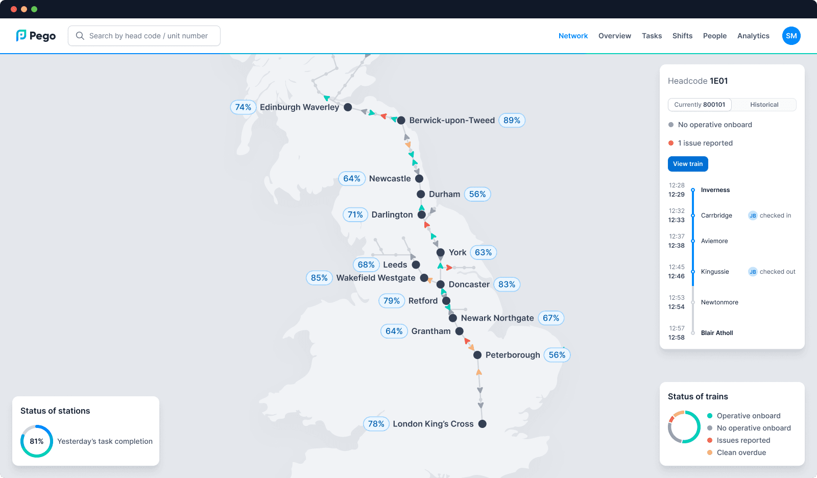 They needed a way to manage in-transit and turnaround cleaning across an entire rail network - tracking operatives as they boarded and exited trains, reporting maintenance and cleanliness issues and giving the end client real visibility into network-wide performance.